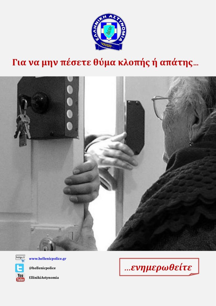 Να είστε ιδιαίτερα επιφυλακτικοί σε άγνωστα άτομα που επιχειρούν με διάφορα προσχήματα και τεχνάσματα να εισέλθουν στην οικία σας.